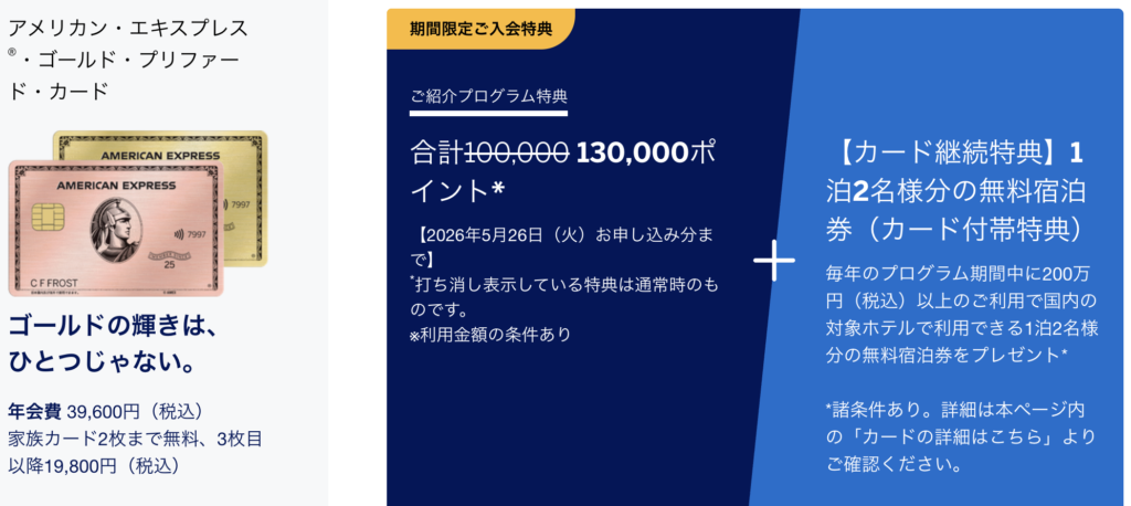 アメックスゴールドプリファード6か月で150万利用で13万ポイント