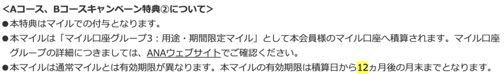 特典②のマイルの有効期限は?