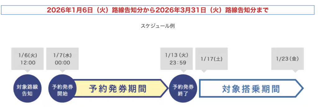 - 翌週土曜日〜その次の金曜日まで👉搭乗期間