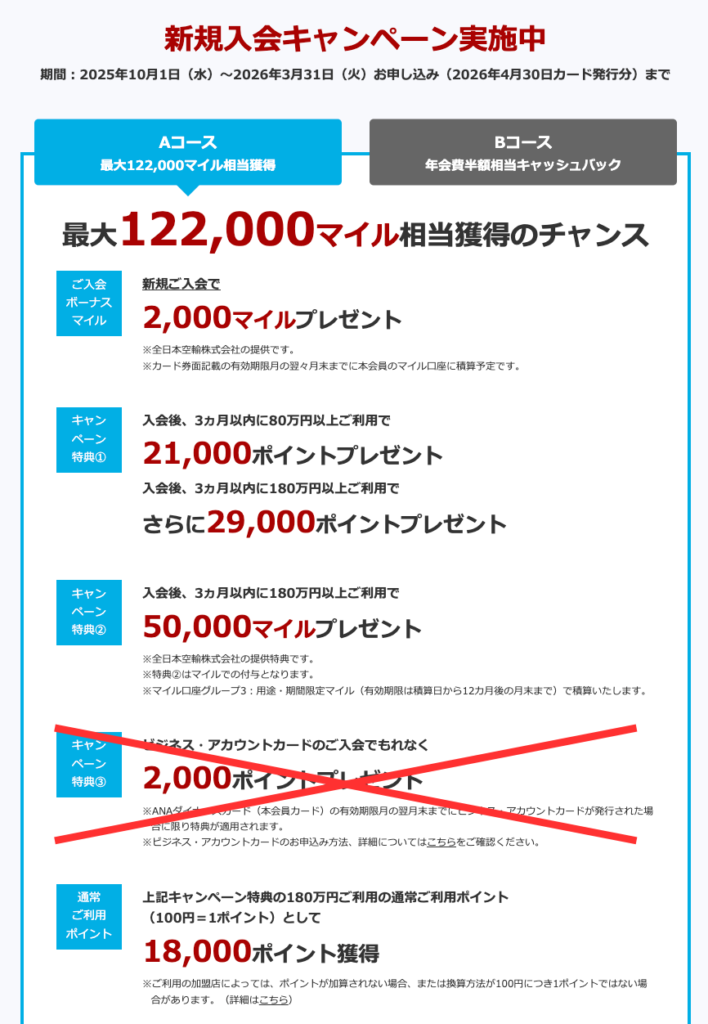 ANAダイナースカード3ヶ月以内に180万決済で12万マイル!