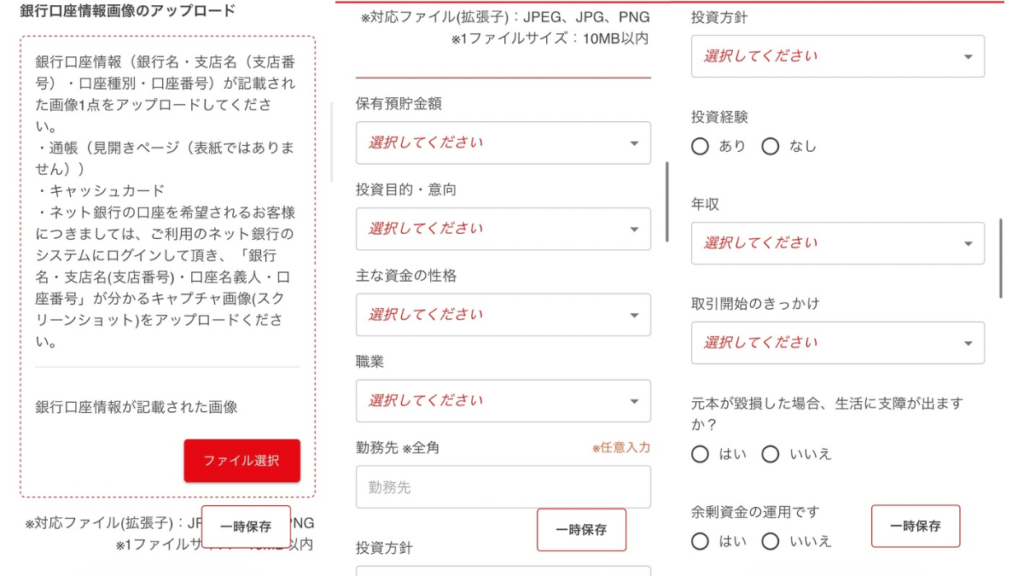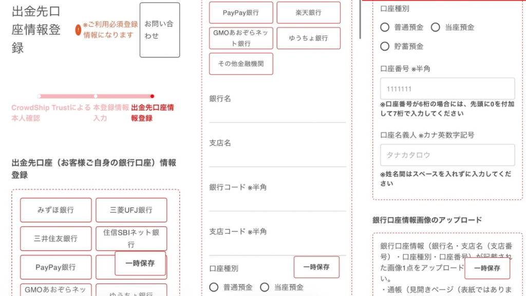 必要な箇所を画面に沿って入力・選択し、出金先口座情報等を登録します