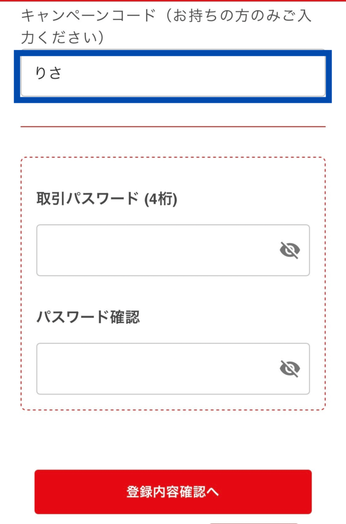 手順4:キャンペーンコードに「りさ」を入力(重要♪)