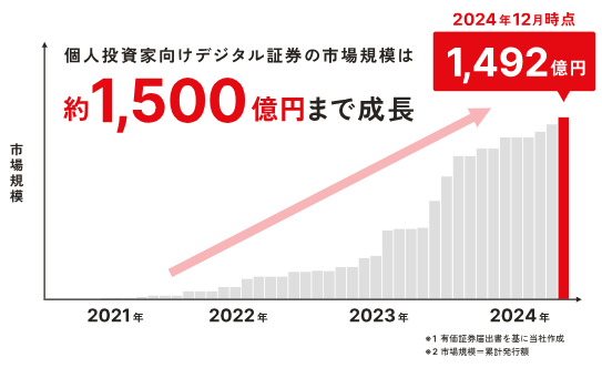 デジタル証券市場自体も勢いがあって、市場規模は1,500億円に達しています。