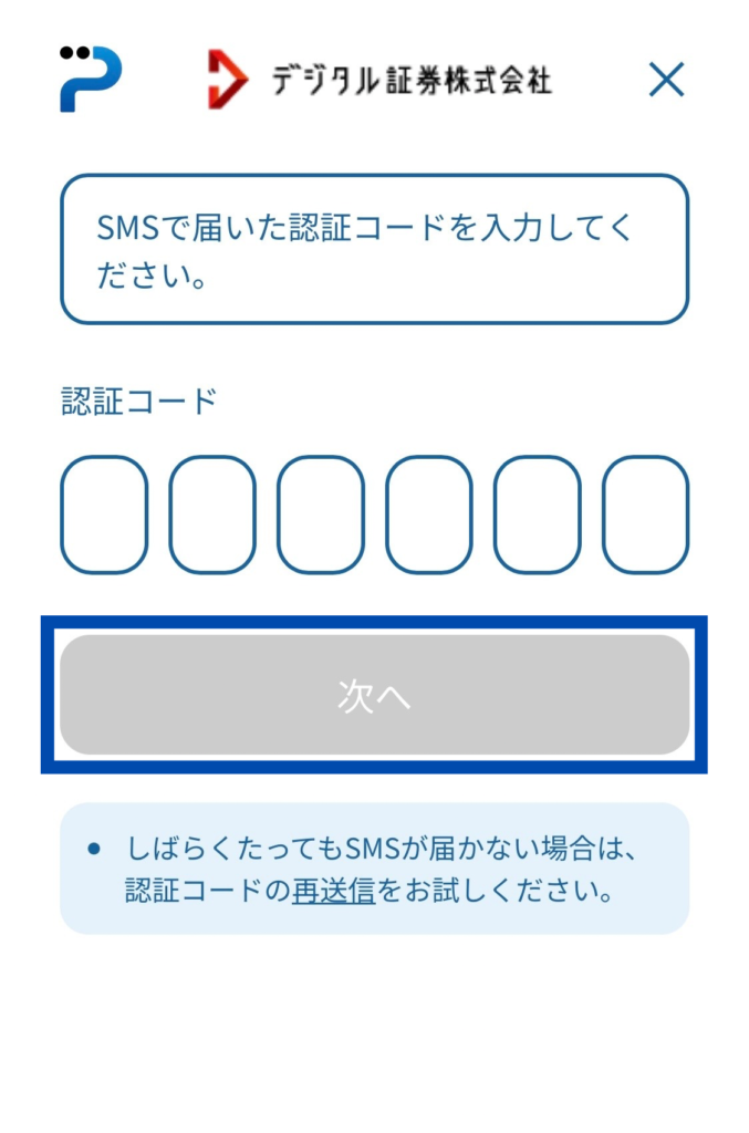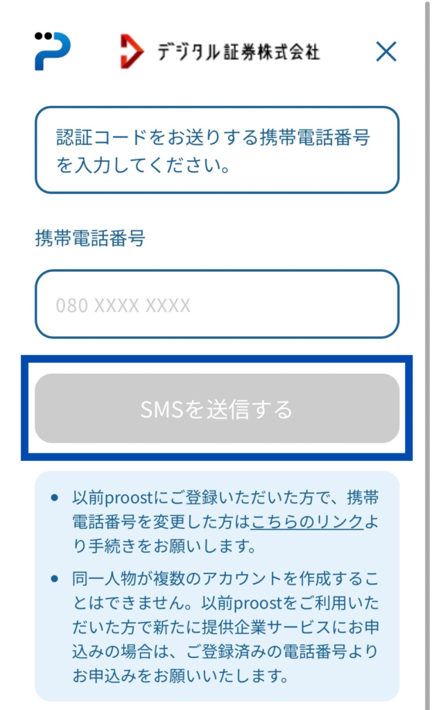 携帯電話番号を入力し、「SMSを送信する」をタップします