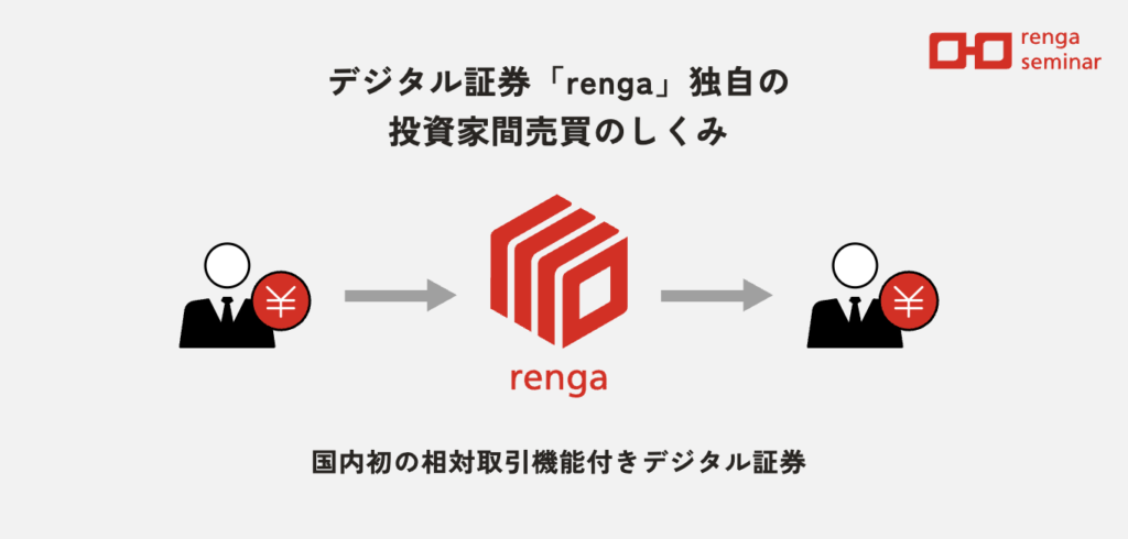 rengaは国内で初めて「投資家間売買」という仕組みを取り入れていて、自分が保有しているデジタル証券を、ほかの投資家に直接売却できるようになっています。