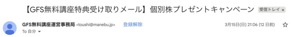 最後まで見ると「特典受け取りはこちらのメール」という件名のメールが届く