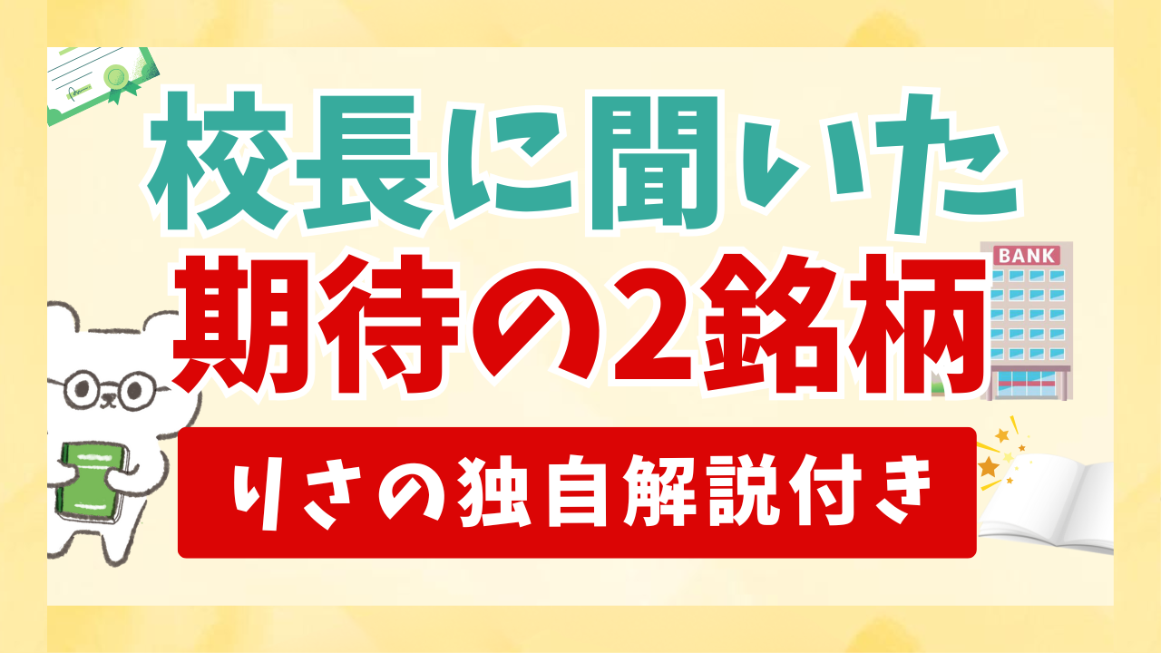 超クローズな場だったからか、校長が期待できる2銘柄を教えてくれたので、今回バフェッサの動画で学んでくれた方限定でこっそり共有しちゃおうと思います!